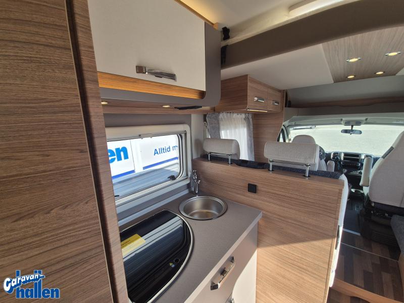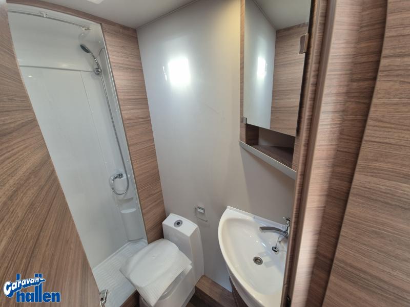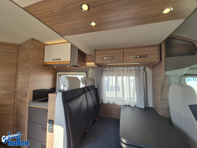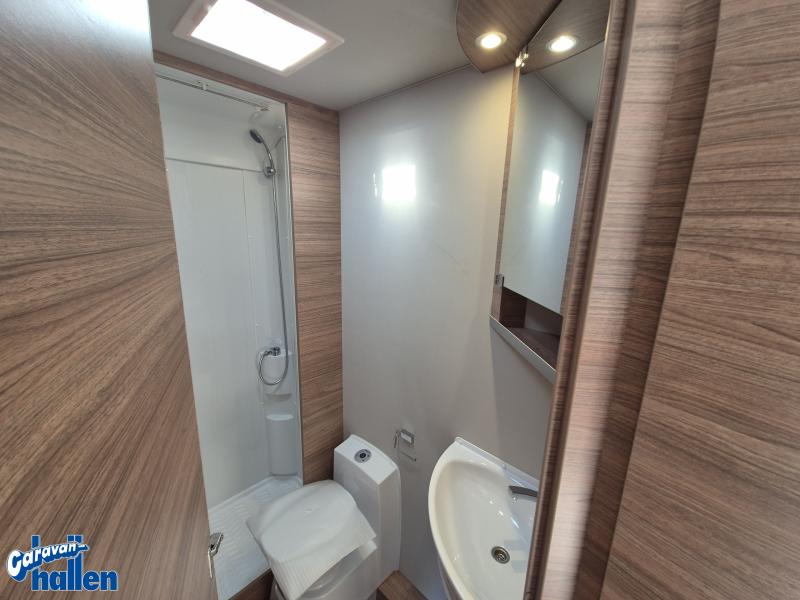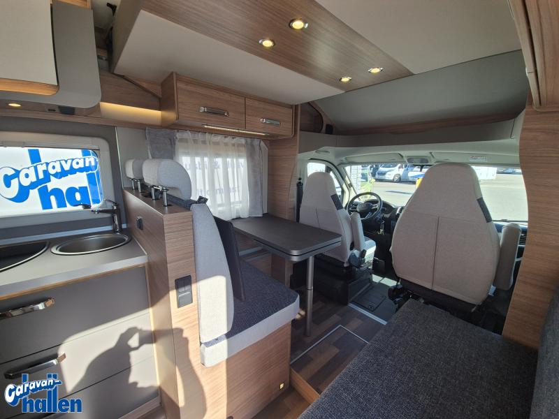 För att säkerställa att hela familjen får plats finns en extra dubbelsäng. Denna kan enkelt fällas ner nattetid för att skapa ytterligare sovplatser, och fällas upp på dagtid för att frigöra yta interiört. Perfekt för familjesemestern helt enkelt!